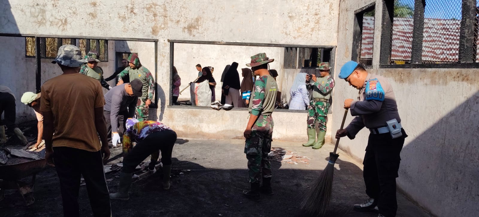 Prioritas pembersihan difokuskan pada ruang-ruang kelas yang terdampak, ruang guru, toilet, gudang sekolah, serta area sekitar bangunan yang terkena dampak kebakaran. Setelah waktu zuhur, Koramil Kuta Makmur turut mendirikan tenda di lingkungan sekolah sebagai dukungan logistik.