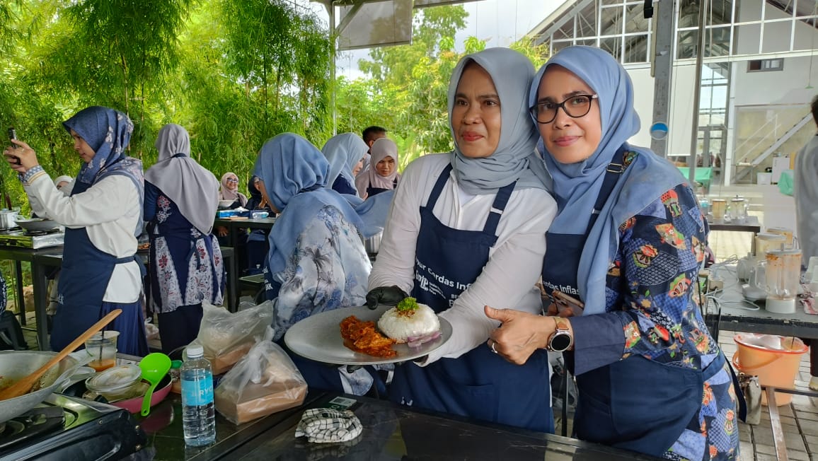 Pantauan media di lokasi, para ibu-ibu sangat antusias menyimak penjelasan Chef Surya. Berbagai trik memasak hemat bahan pun dicoba langsung, salah satunya memasak tumis ikan tuna tanpa cabai segar, melainkan menggunakan cabai bubuk sebagai alternatif. Hal ini membuat peserta tersenyum kagum sekaligus termotivasi untuk mengaplikasikan tips tersebut di dapur masing-masing. Kegiatan ini menjadi momen edukatif sekaligus menyenangkan, membuktikan bahwa menjaga inflasi tidak hanya urusan ekonomi, tetapi bisa dimulai dari dapur rumah tangga. [LY]
