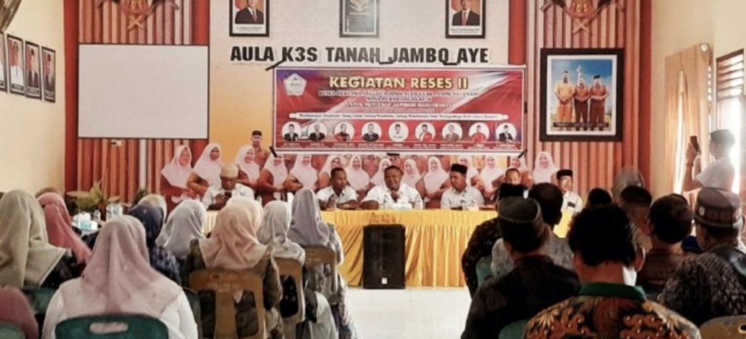 Zonamedia. Co|Aceh Utara — DPRK Aceh Utara Daerah Pemilihan VI melaksanakan kegiatan Reses II Masa Persidangan Tahun 2026 di Aula K3S Kecamatan Tanah Jambo Aye, Kota Panton Labu, Sabtu (14/2/2026). Kegiatan ini merupakan bagian dari pelaksanaan fungsi representasi dan pengawasan DPRK Aceh Utara dalam menyerap aspirasi masyarakat serta mengawal pemulihan sektor pendidikan pascabencana banjir yang melanda wilayah Aceh Utara.