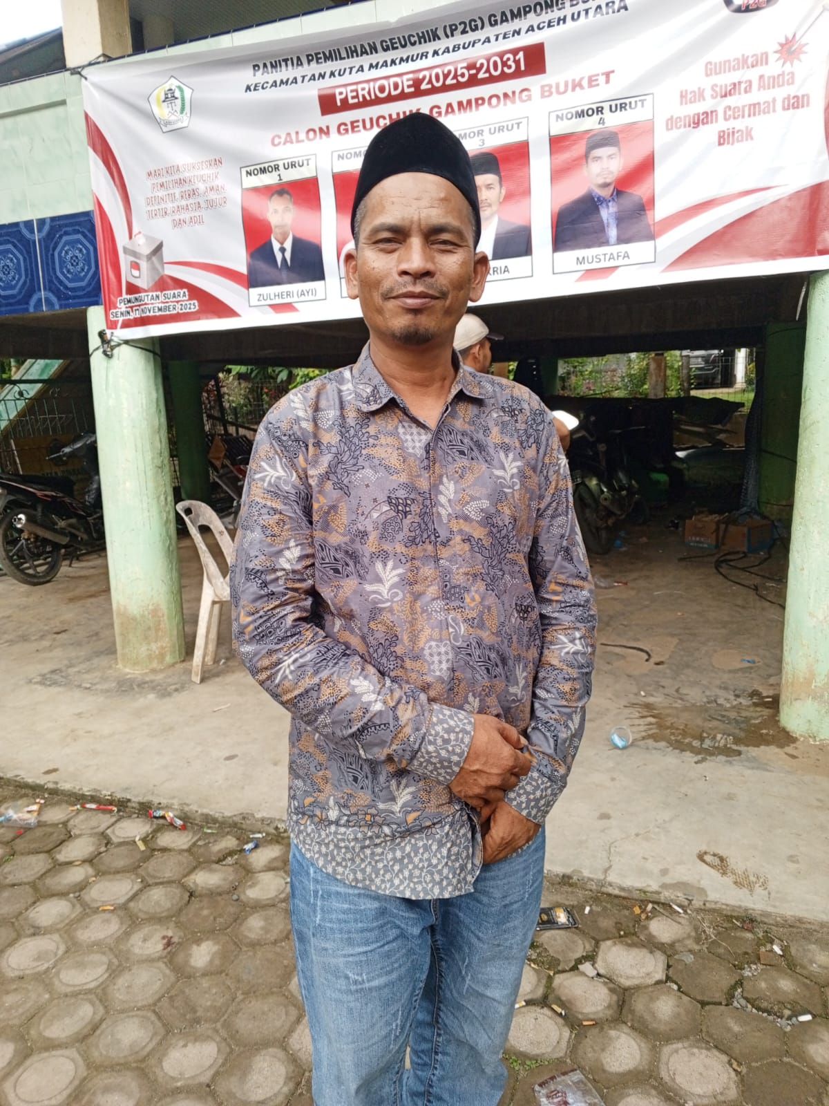 Aceh Utara — Mustafa ZA atau yang akrab disapa Toke Muh terpilih sebagai Keuchik definitif Gampong Buket untuk periode 2025–2031 dalam pemilihan langsung yang digelar di halaman meunasah gampong, Senin (17/11/2025).