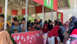 Lhokseumawe -Mahasiswa KKN PPM Kelompok 49 Universitas Malikussaleh membuat tong sampah dari drum bekas di Desa Batuphat Timur, Kecamatan Muara Satu, untuk mengatasi minimnya fasilitas pembuangan sampah.