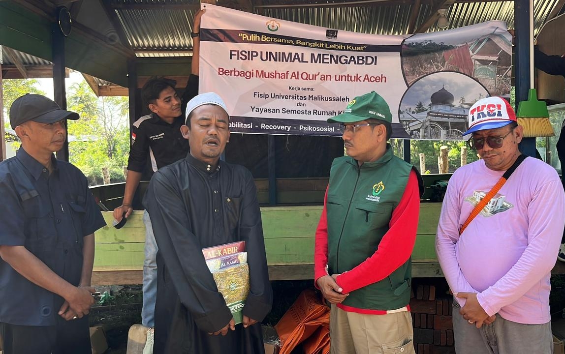 Aceh Utara — Fakultas Ilmu Sosial dan Ilmu Politik (FISIP) Universitas Malikussaleh kembali menunjukkan komitmen pengabdian kepada masyarakat melalui kegiatan FISIP Mengabdi, dengan menyalurkan bantuan berupa Al-Qur’an dari Yayasan Semesta Rumah Kita, Rabu (31/12/2025).