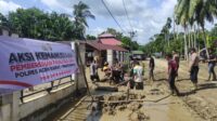 Polres Aceh Barat Bersama Warga Bersinergi Bersihkan Sekolah Terdampak Bencana di Woyla